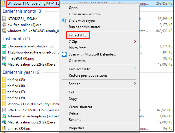 - Windows 11 Onboarding Kit v1.1.zip klasörünün üzerine sağ tıklayın ve Tümünü Ayıkla’yı tıklayın.