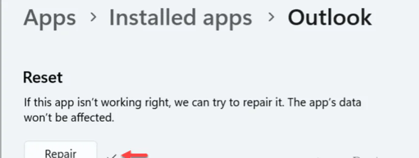 • Windows uygulamayı onaracaktır; tamamlandığında Onar düğmesinin yanında bir onay işareti göreceksiniz.