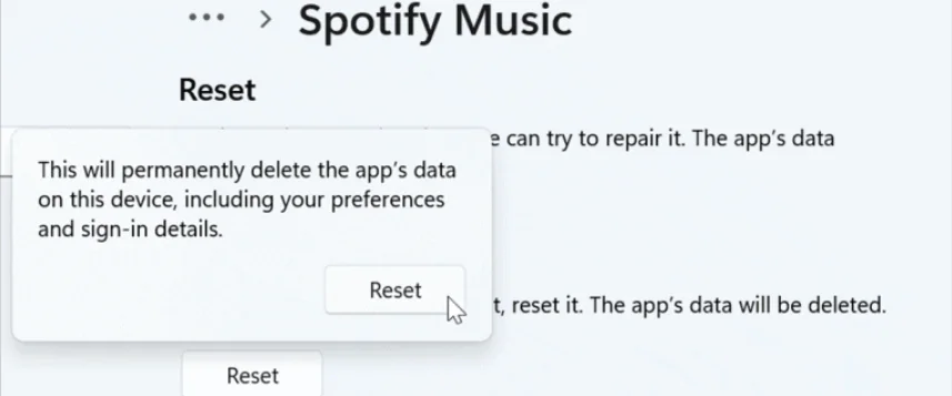 Ancak Sıfırlama işlemi ayarları ve diğer verileri kaldırır. Uygulamayı tamamen yeniden yüklemeden önce bunu akıllıca ve son çare olarak kullanmak isteyeceksiniz.