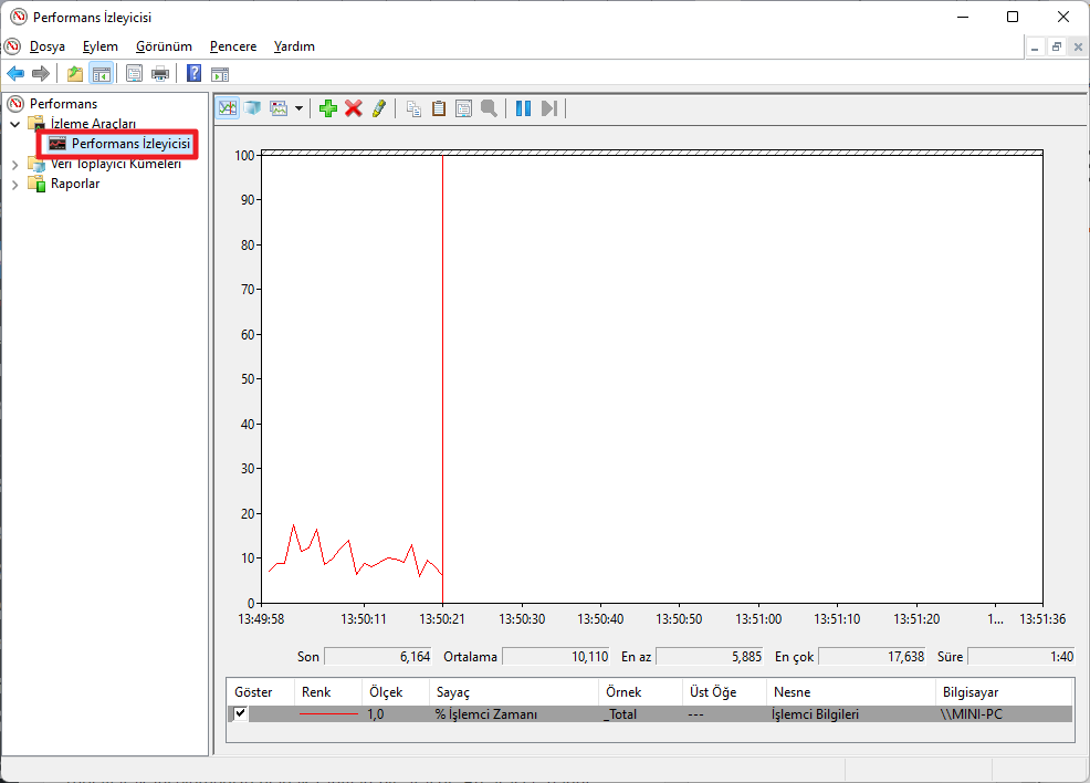 CPU Kullanımını Kontrol Etmek için Performans İzleyicisini Kullanma