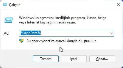 - Windows + R ile Çalıştır kutusunu açın ve yazın veya yapıştırın %AppData%, ardından Tamam butonunu tıklayın.