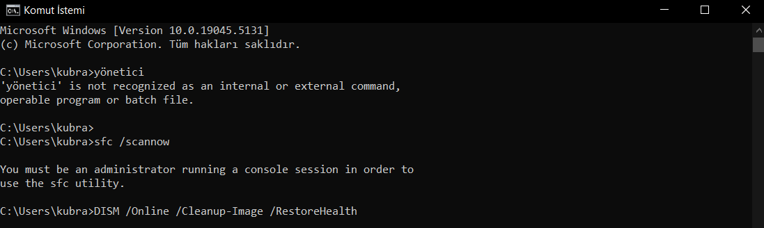 - Komut İstemi’ni yönetici olarak çalıştırın.