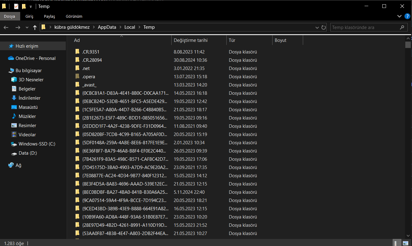Sistemde biriken geçici dosyalar, Dosya Gezgini’nin performansını olumsuz etkileyebilir. Temizlemek için: