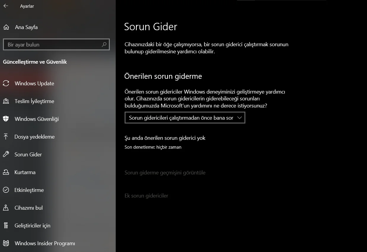 - Ayarlar > Sistem > Sorun Giderme menüsüne gidin.