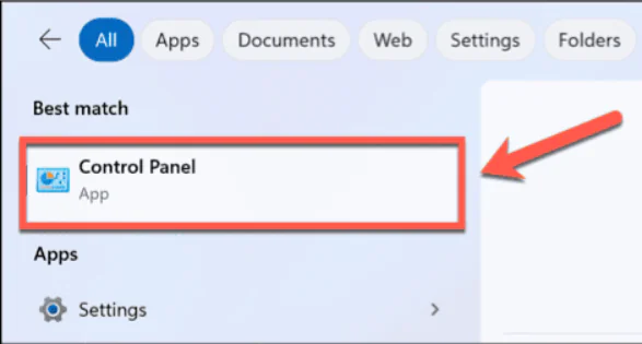 - Sonuçlardan Denetim Masası’nı seçin.