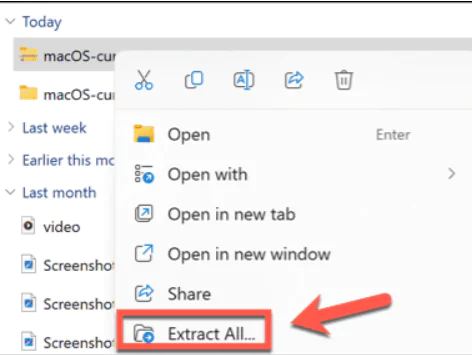 - İndirilen dosyaya sağ tıklayın ve dosyayı açmak için Tümünü Çıkar’ı seçin.