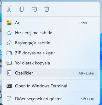 - Değiştirdiğiniz klasöre sağ tıklayın ve Özellikler seçeneğini seçin.