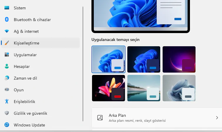 2-Sol taraftaki menüden Kişiselleştirme’yi ve ardından sağdaki Temalar’ı seçin.