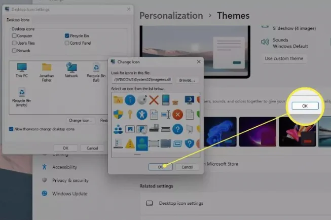 4-Masaüstü simgelerinden birini seçin ve ardından yeni bir simge seçmek için Simge Değiştir’i seçin.