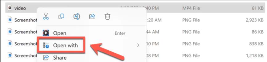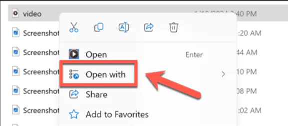 - Dosyaya sağ tıklayın ve Birlikte Aç’ı seçin.