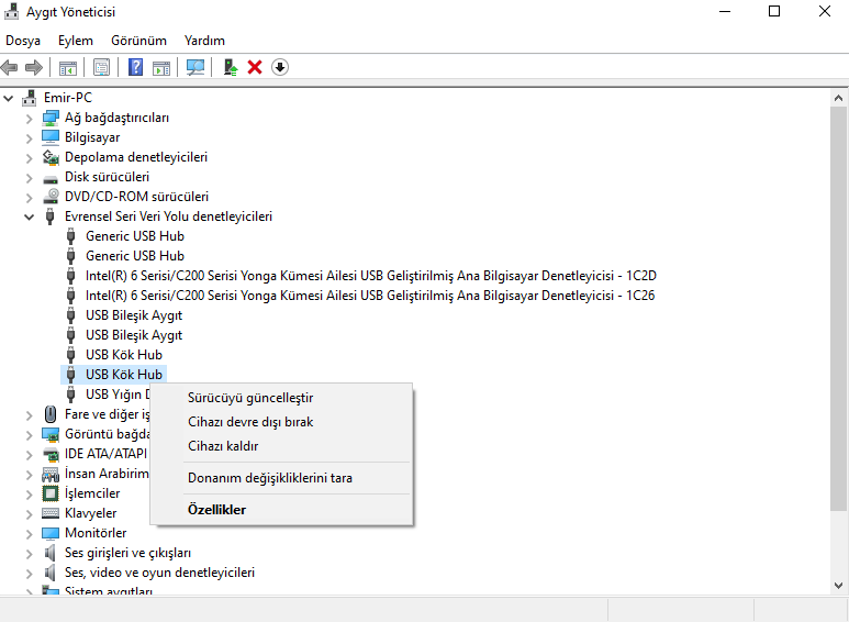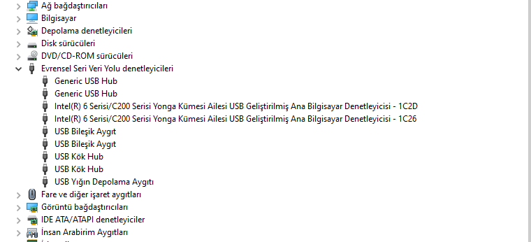 2-Aygıt Yöneticisi’nde “Evrensel Seri Veri Yolu” denetleyicileri kategorisini genişletin.