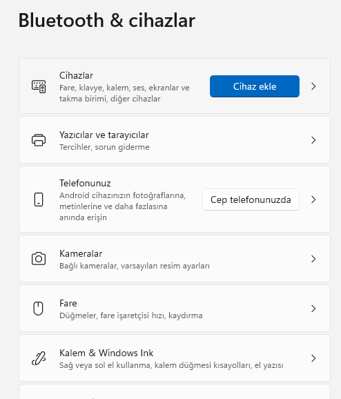 - Yazıcı ve Tarayıcıları Seçin: Bluetooth ve cihazlar bölümünden Yazıcılar ve tarayıcılar seçeneğine tıklayın.