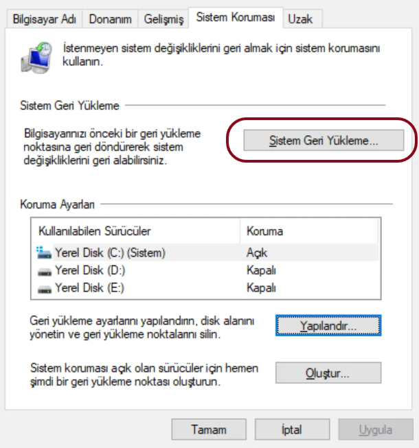 - Sistem Geri Yükleme Yapın