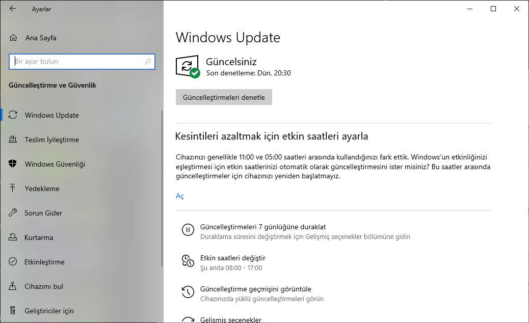 Windows Güncellemelerini Kontrol Etme ve Yükleme