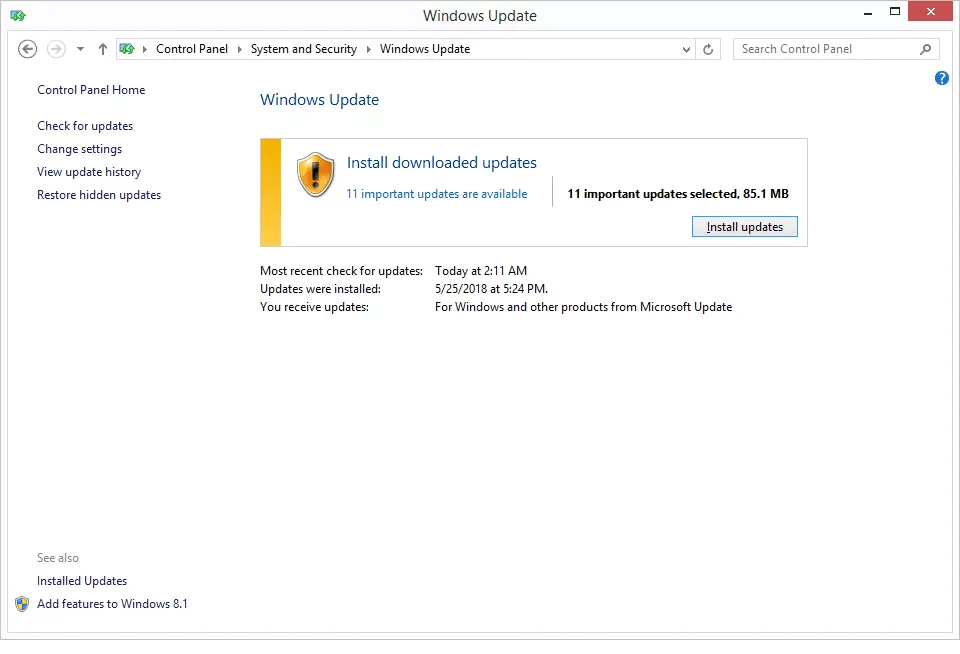 Windows‘un bu sürümlerinde, Windows Update, Denetim Masası’nda yapılandırma seçenekleri, güncelleme geçmişi ve çok daha fazlası ile birlikte bir uygulama olarak bulunur .