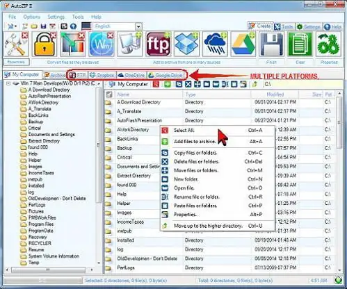 - Araç, aşağıdakiler dahil olmak üzere birden fazla platformu destekler: Dropbox, FTP Siteleri, Microsoft’un OneDrive’ı, Google Driveve tabii ki yerel bilgisayarınız.