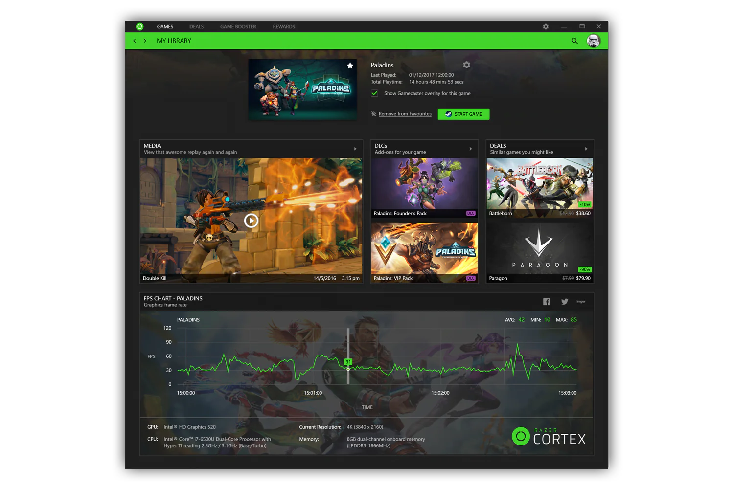 Razer Cortex’in FPS sayacına sahip oyunlar için anında kare hızı geribildirimi alabilirsiniz. Razer Cortex ile ilgili en güzel şey, oynamayı bıraktığınızda da bir FPS tablosu sunması.