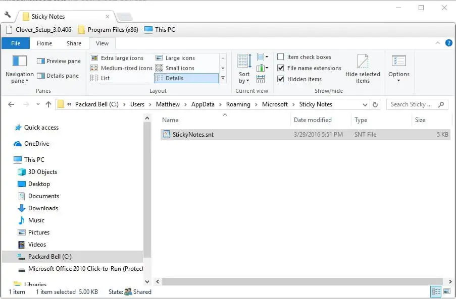 Yapışkan Not’un masaüstü bildirimlerini, Windows 10 sürümlerinde bir StickyNotes.snt dosyasından kurtarabilirler. Bu, Windows 8 ve 7 ve önceki sürümlerde Win 10 yapı sürümlerinde Yapışkan Notlar uygulaması için not içeriğini depolayan bir dosyadır.