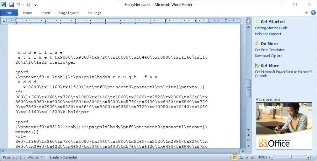 Bu dosyayı doğrudan aşağıda gösterildiği gibi MS Word’de veya alternatif bir kelime işlemcisinde açın. Ardından, silinen notların metnini belgenin altına yakın bulabilirsiniz.