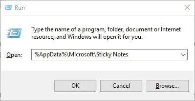 • Windows 8 ve 7 (ve daha önceki kazanın 10 build versiyonları), kullanıcılar Run ‘% AppData% MicrosoftSticky Notlar‘ yazın ve tıklamalısınız Tamam.