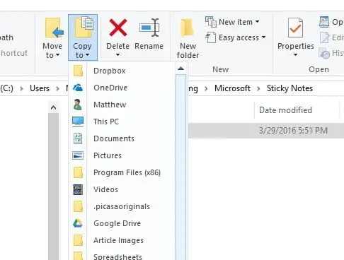 • Ardından, Dosya Gezgini’nin yol çubuğuna ‘% APPDATA% MicrosoftSticky Notes’ yazın ve Return tuşuna basın.