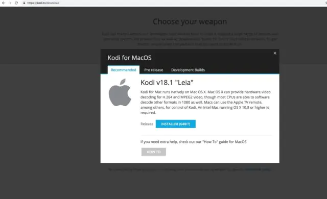 - MacBook‘ta Kodi 18 Leia‘yı çalıştırmak için 64-bit yükleyici dosyasını indirin.