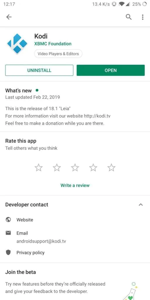 - Android için resmi Kodi uygulaması listenin üstünde olacak. Uygulamanın güvenilirliğini, XBMC Vakfı tarafından geliştirilmiş olduğundan emin olarak sağlayabilirsiniz.
