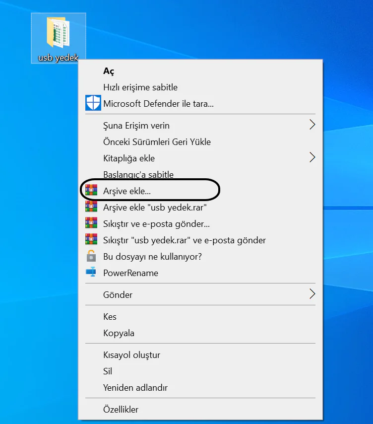 • Bölmek istediğiniz büyük dosyayı sağ tıklayın ve Arşive Ekle seçeneğine tıklayın.