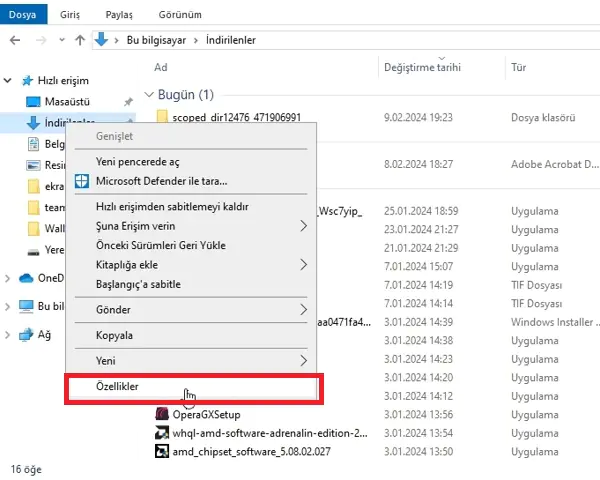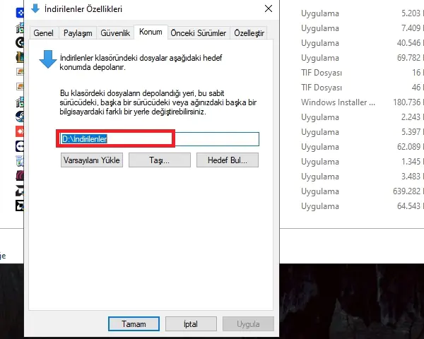 • İndirilenler klasörünü seçtik.