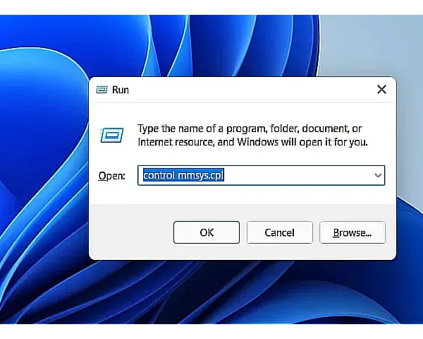 • Kutuya control mmsys.cpl yazın ve Enter tuşuna basın.