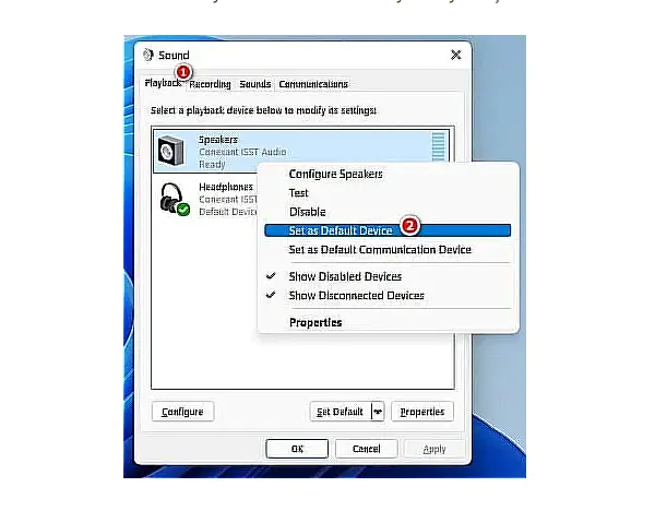 • Bağlam menüsünden “Varsayılan Cihaz Olarak Ayarla”yı seçin.