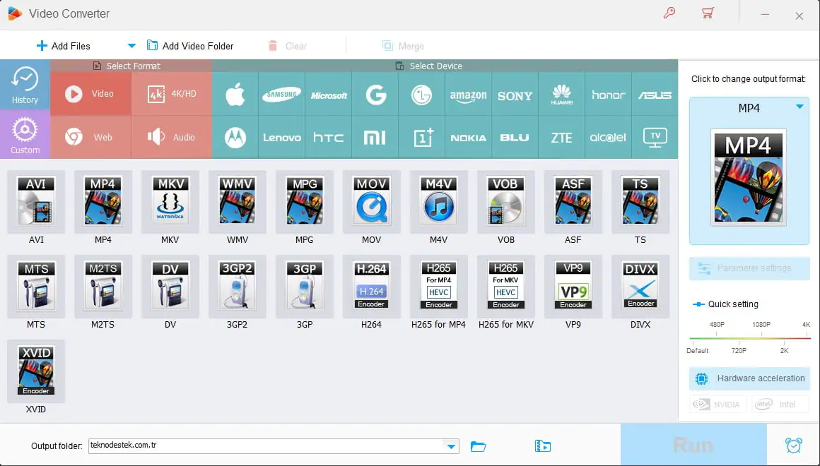 En iyi kısmı ise geniş bir kütüphaneye sahip formatlar ve cihazlar listesinden istediğinizi seçip videolarınızı yaptığınız seçime göre çıkartabilirsiniz.