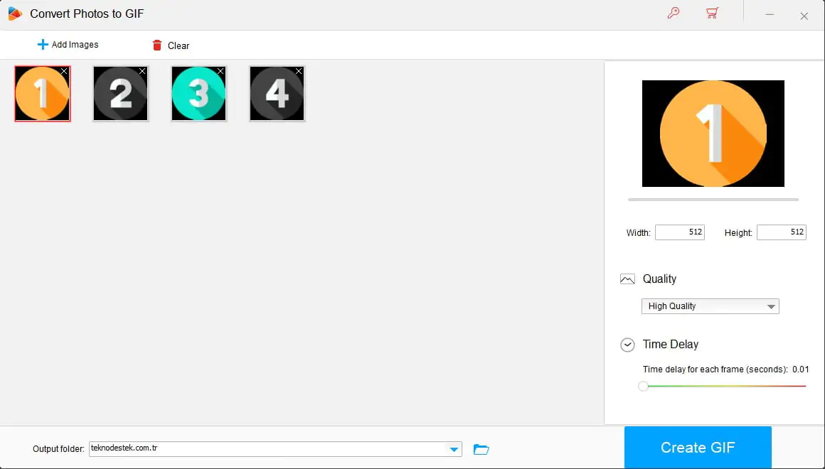 Ayrıca bir sürü resmi içeri aktarıp dilediğiniz çözünürlük ve saniyeyi seçerek dinamik bir GIF oluşturabilirsiniz. Test ettiğim kadarıyla bu özellik gayet stabil çalışıyor.