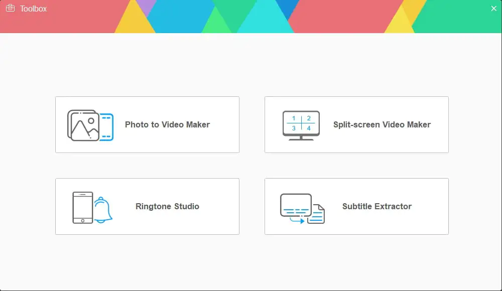 Bu bonus bir kategori. Araç kitinin dört farklı özelliği bulunuyor, bunlar: Resimden Video Oluşturma, Bölünmüş Ekran Video Oluşturma, Zil Sesi Oluşturma, Altyazı Çıkarma. Bu özellikleri tek bir programda bir arada bulabilmek çok nadir rastlanan bir durumdur.