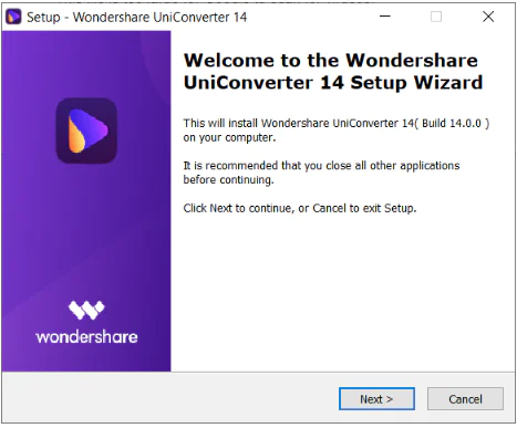 Bir yükleyici dosyası alacaksınız ve onu açtıktan sonra Wondershare UniConverter 14’ü kurmak için İleri’ye tıklayın.