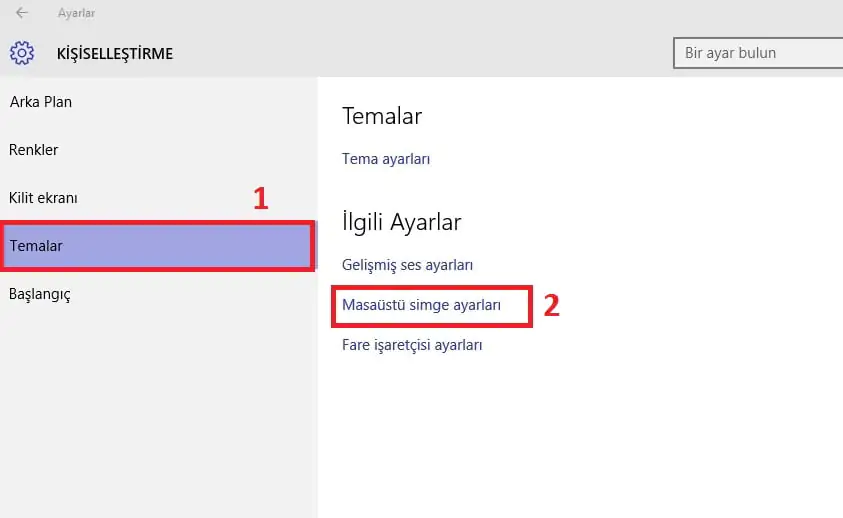 Windows 10 Masaüstü Simgelerini Getirmek