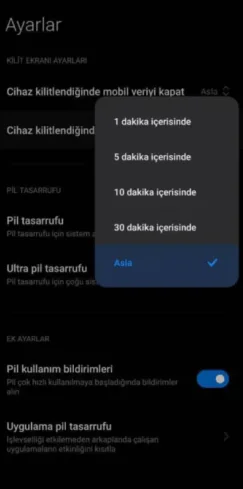 - Kilit ekranı ayarları kısmında yer alan ”Cihaz kilitlendiğinde önbelleği temizle” seçeneğini aktif edelim.
