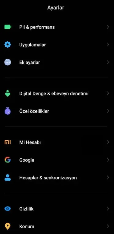 - Ayarlar’a menüsüne giriş yapmanızın ardından Pil ve Performans kısmına sekmesine giriş yapalım.