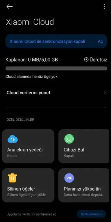 - Mi Hesabınız yok ise ya da giriş yapmadıysanız giriş yapalı ve ardından Xiaomi Cloud sekmesine tıklayalım.