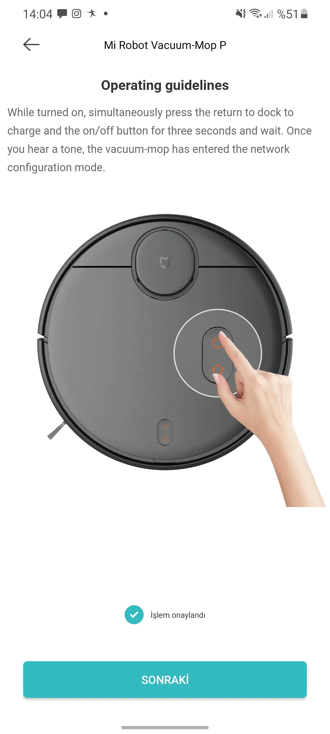 Bu işlemden sonra süpürge evimizde ki Wi-Fi ağını bulucak eğer bulamazsa resetleme işleminden sonra Bluetooth ve Wi-Fi telefonunuzda aktif mi bunları kontrol ediniz.