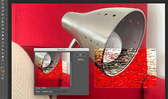 Mezzotint, bir görüntüyü, aralarından seçim yapabileceğiniz birkaç desenden birine göre pürüzlendiren bir özelliktir. Gri tonlamalı görüntülerde siyah beyaz desenler kullanılırken, renkli görüntülerde doygun renkler kullanılır.