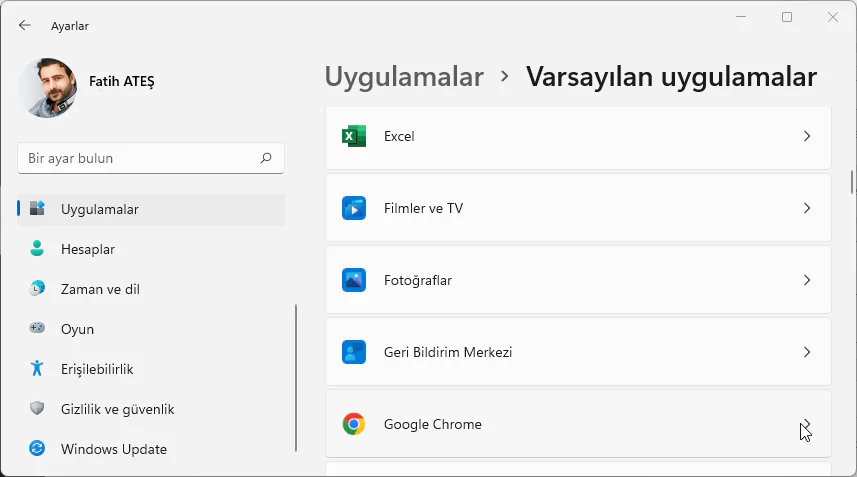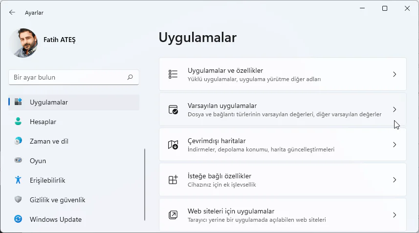 Varsayılan programlarınızı değiştirmek için aşağıdaki adımları izleyin: