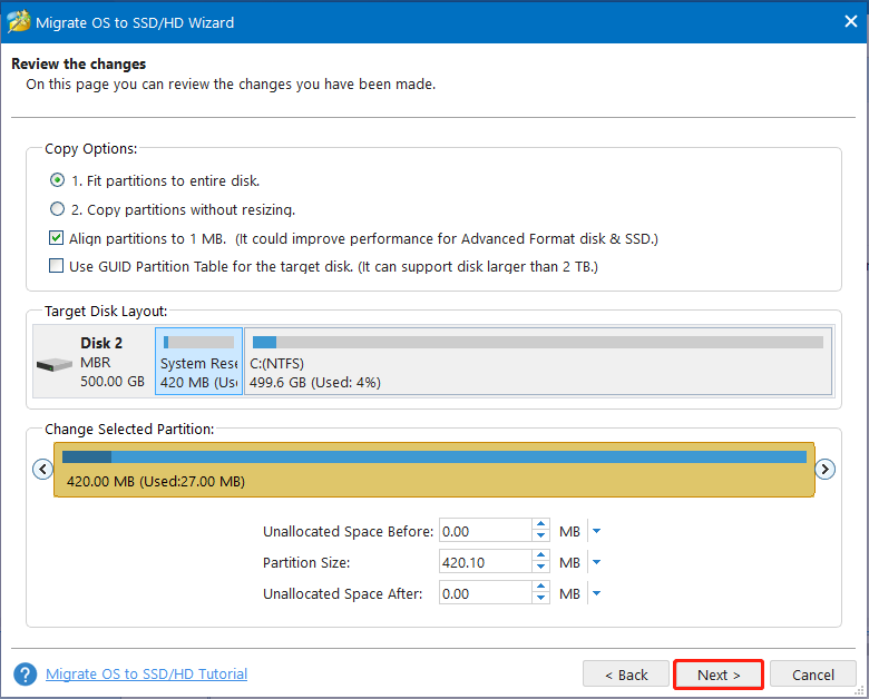 Adım 3. İhtiyacınıza göre kopyalama seçeneklerini gözden geçirin ve İleri’ye tıklayın.