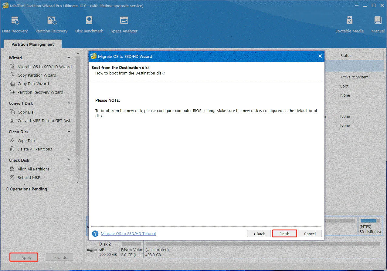 Adım 5. Taşıma işlemini yürütmek için Uygula’yı tıklayın. Yeni bir SSD ekledikten ve OS’u taşıdıktan sonra ne yapılmalı? Şimdi adım 3’e geçelim.