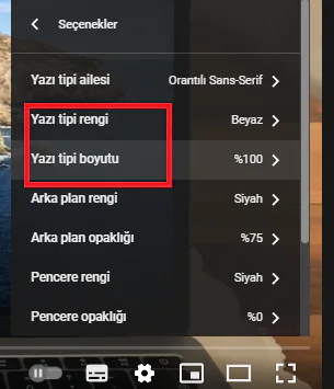 Youtube altyazı tipi ve boyutunu değiştirme adımları