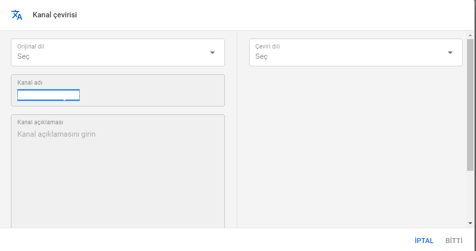 - Kanalınızın adı ve açıklaması için çeviri girin.