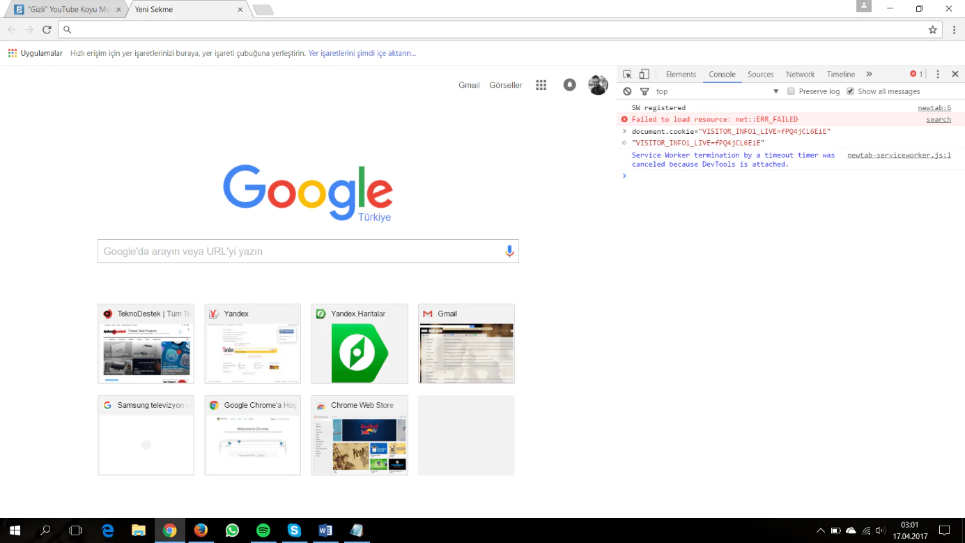 Bu sekmede, document.cookie=”VISITOR_INFO1_LIVE=fPQ4jCL6EiE” bu kodu kopyalıp yapıştırın ve Enter‘a basın.