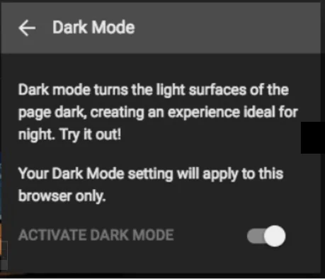 “Activate Dark Mode” kısmına tıkladığınız zaman YouTube karanlık (koyu) moda geçecektir.