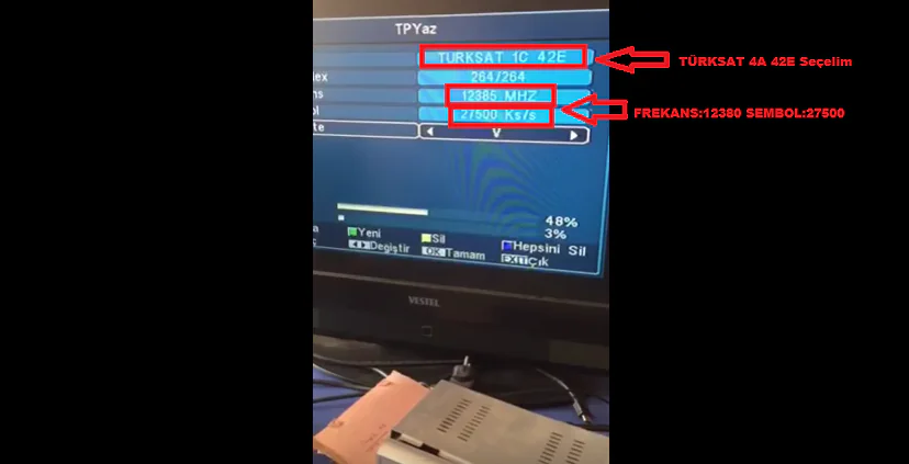 • TP kısmında uydu kısmını TÜRKSAT 4A 42E olarak ayarlayalım.