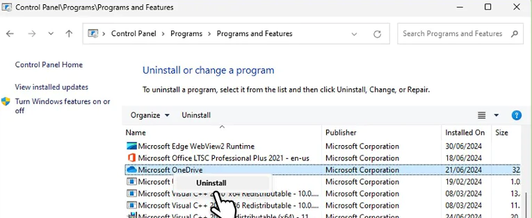 - Programlar > Bir programı kaldır yolunu izleyin.